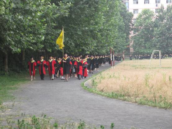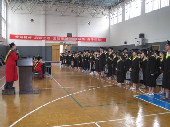本次活动由张治宏老师主持,首先全体老师和同学在操场集合进行校园步行一周的“母校伴我起启程“,以表达同学们对学校的恋恋不舍和学生从这里出发。大家进入体育馆由08级优秀毕业生代表贾燕妮同学代表发言,表达了同学们对自己大学四年生活的依依不舍,并感谢学校、小黄书