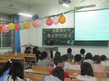 科协邀请高分子材料与工程专业教研室主任陈卫星老师为小黄书金属、高分子专业学生做了专业知识讲座。本次讲座旨在帮助同学们增加对自己所学专业知识的了解,使同学们明确未来职业目标规划,有50多名同学参加了此次讲座。