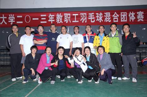 领导、工会都十分重视,教职员工也给予了极大的支持。在比赛前一个月,参赛队员们就进行了精心的布置和刻苦的训练。2013年10月18日比赛拉开了序幕。虽然队伍在首轮就遭遇轮空,但队员们却没有丝毫松懈,而是进行了更加积极的备战。校羽毛球场地上有材化年轻人抛洒的汗水,有经验丰富教师的耐心指导,更有教职工和家属们的加油鼓励。