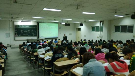 首先,王老师做了简短的自我介绍。接着,王老师结合自己的经历及感悟,详细的讲谈了自己对党的历史和发展的见解,同时把历史与当今社会发展作对比。同时,讲述了党的路线发展并表达了自己对党的敬意,大力宣讲并赞赏了我党近年来反腐工作所取得的优异的成果及“中国梦”的发展。王老师的演讲形象生动,娓娓道来,在场每位同学报以热烈的掌声。