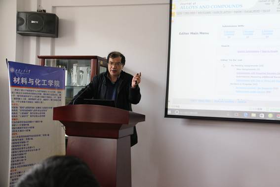 2016年12月26日至27日,浙江大学潘洪革教授来我校就学术论文撰写、项目申报、人才培养、储能材料等方面进行了为期两天的讲学。26日,雷亚萍副校长全程参加了此次活动,并感谢潘洪革教授为我校学科建设、人才培养、科学研究等方面所做的贡献。27日上午,张君安副校长出席并参加了人才培养座谈会,表示潘洪革教授渊博的知识和丰富的社会经历将给我校老师和学生们留下宝贵的财富。