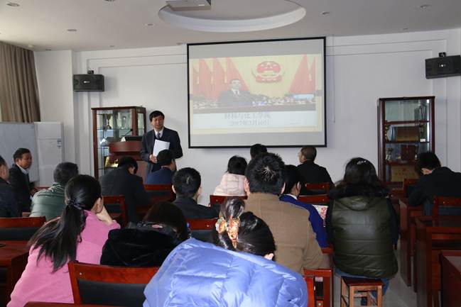 组织全体教师在工3-404会议室学习全国高校思想政治工作会议重要讲话精神与2017年“两会”精神。会议由小黄书