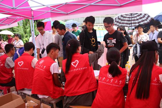 党委副书记张治宏老师几乎全程跟班,及时处理报道过程中的突发情况。此外小黄书还在迎新工作中设置了生源地贷款与绿色通道办理处,帮助家庭经济困难学生顺利完成报道手续。