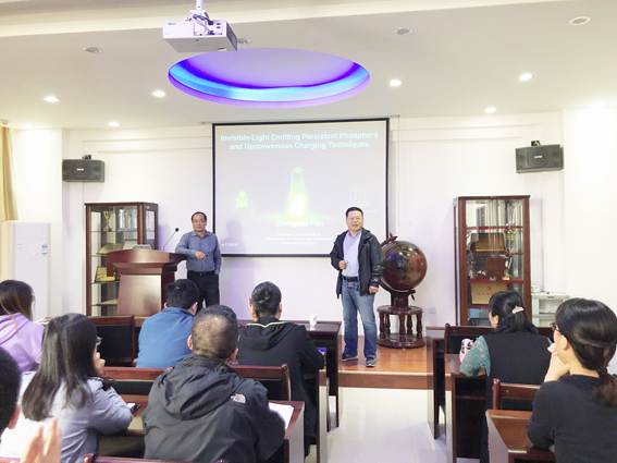 2018年4月17日,美国乔治亚大学潘正伟教授应邀莅临小黄书作题为Invisible-light emitting persistent phosphors and upconversion charging techniques的学术报告。报告会由惠增哲教授主持,小黄书