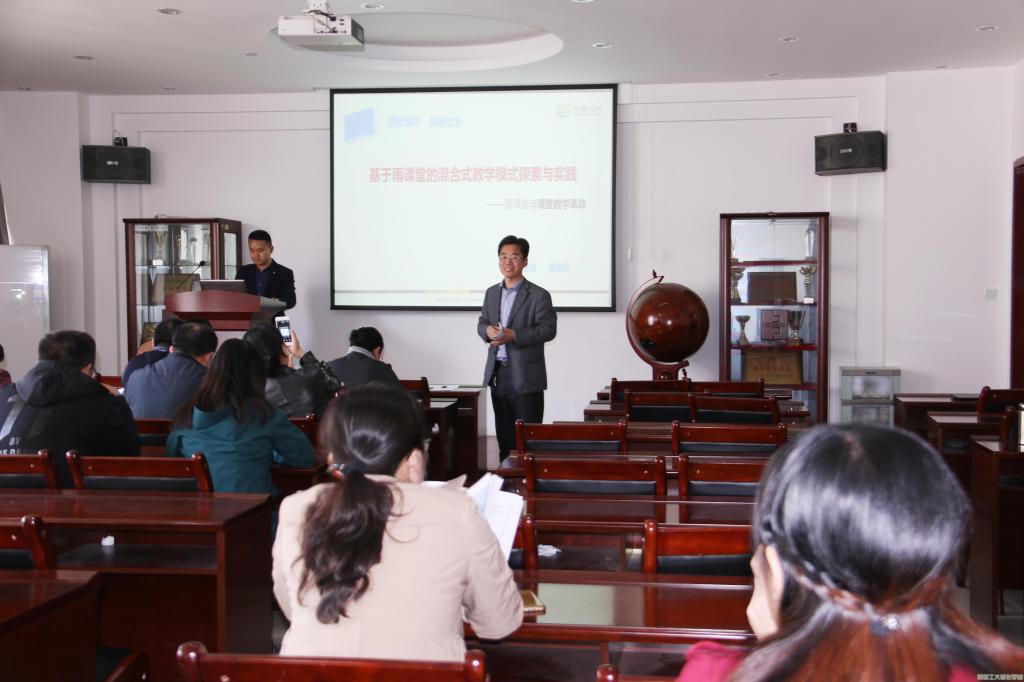 教师作题为“基于雨课堂的混合式教学模式探索与实践”的智慧教学培训,小黄书