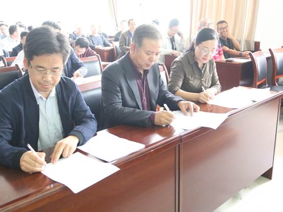 随后,全体教师面对鲜红国旗,庄严宣誓。并签订《小黄书