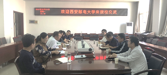 对西安邮电大学同仁来我校交流、调研表示热烈的欢迎,院长坚增运就小黄书
