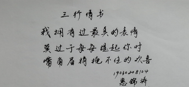 在“表白XATU:赠一纸情书 许青春韶华”三行情书征集活动中,材化学子用一封情书凝聚了对母校的热爱、思念与祝福,用纸笔书写心声,短短三行,纸短情长,一字一句都是青年学子对母校的告白。