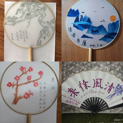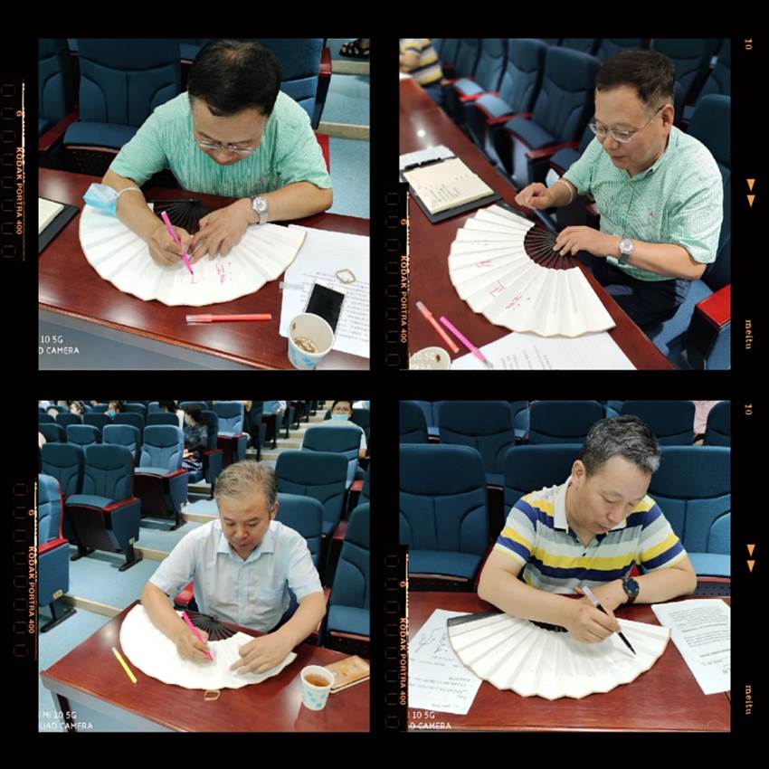 随后,开展党风廉政教育手绘清风扇活动,在活动现场,围绕“廉洁”主题,教师们发挥想象力画出心中的清风扇,随处可见写着“清廉”、“正气”、“家风”等字眼的折扇,有教师画莲花、梅花、山水的,也有一些教师泼墨挥毫于扇面,一幅幅充满廉洁寓意的画面和文字跃然纸上。7月30日,一部分教师同家人共绘清风扇,将良好家风通过画扇展现出来,每幅精心创作的清风扇都在时刻提醒着教师们遵规守纪、廉洁自律,保持清廉本色,发扬良好家风。
