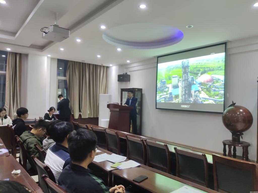 会议开始,张科长为在场同学们放映企业宣传片,介绍了集团的发展历程、产业布局,通过展示企业内部文化活动彰显“以人为本”的经营理念,通过产品运用的具体实例体现“开拓创新”的企业精神。随后针对员工职业发展保障、发展通道、人才梯队培养体系进行了详细的介绍,表示集团在培养方式上以“内培为主、外培为辅”,在培养定位上坚持“先横后纵、先技术后管理”的原则对职员进行培养,让同学们进一步了解了集团培养人才模式。张科长还为同学们详细介绍了集团在薪资福利待遇上的政策,并将公司的研发实力为大家展现,让同学们了解到未来的职业发展前景。会后,张科长还与同学们共同探讨了私营企业近年来降低高校人才需求的原因,以及当地企业的普遍薪资待遇,并耐心解答了求职学生关于企业实习地点、工作时间、节假日、五险一金缴纳等方面的问题。
