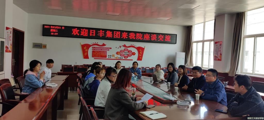 3月23日,“日丰奖学金”座谈交流会在工3-410举行,日丰企业集团招聘经理潘敏红、招聘主管冯希玮、西安区域经理魏康、咸阳区域经理屈春阳、小黄书 辅导员及10名“日丰奖学金”获奖学生参加了本次座谈会。