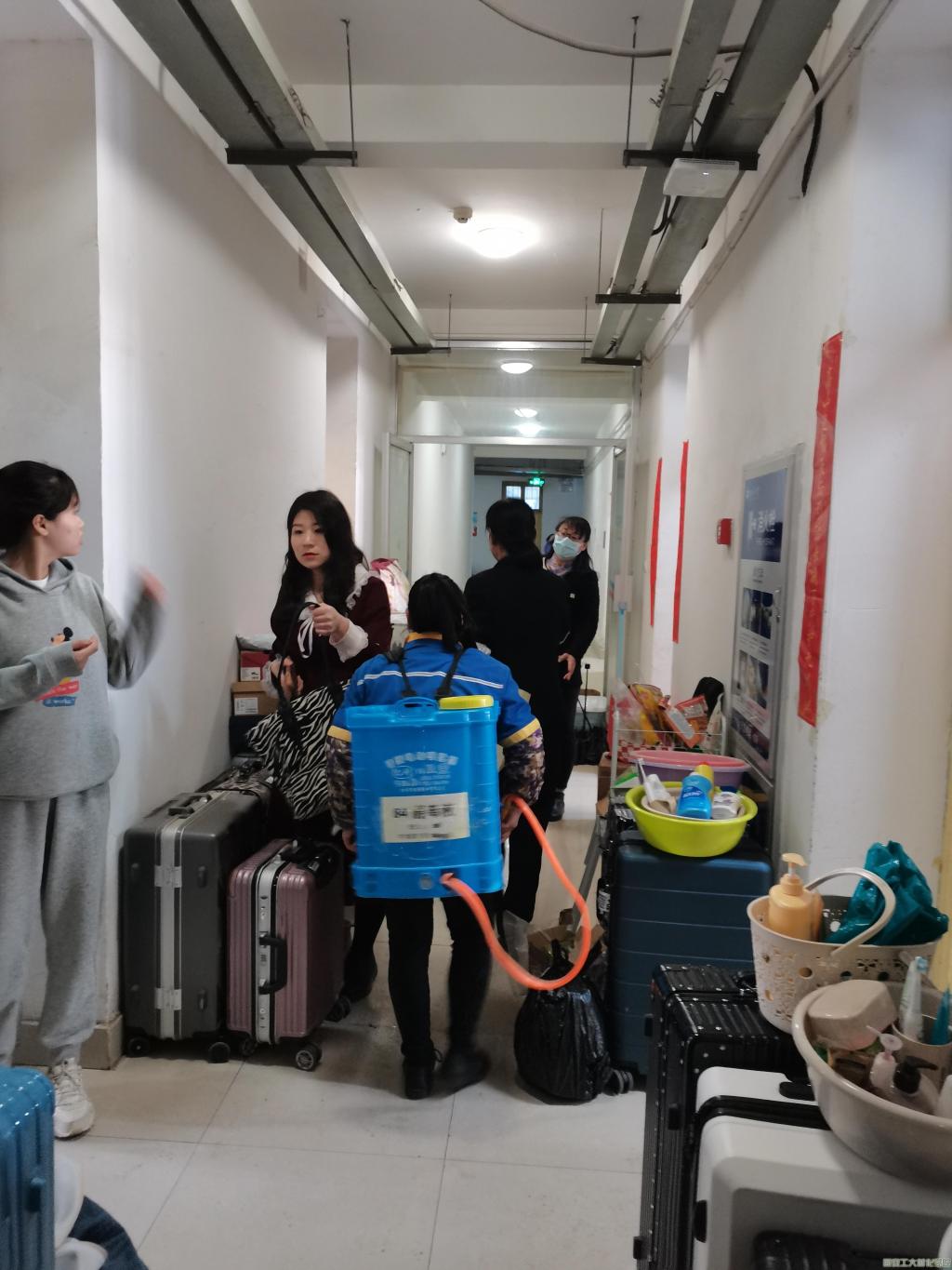 全体辅导员深入宿舍,组织学生认真打扫宿舍卫生,用公寓配制的消毒液擦拭书桌、衣柜和拖地。最后,各年级辅导员督促学生将宿舍内堆放的物品全部清理出宿舍,摆放在楼道内,彻底清理卫生死角,垃圾及时清理出宿舍楼,宿舍打扫完后联系楼管,安排专人对宿舍内进行消毒,小黄书