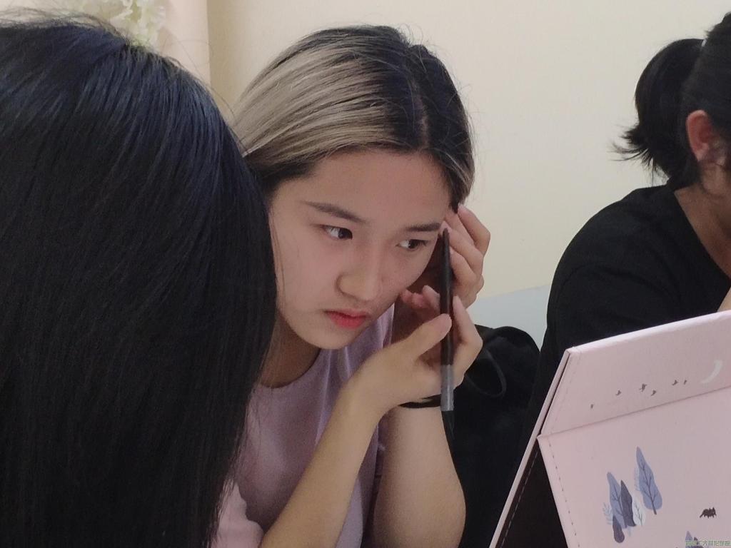 本次素质拓展活动由社交与礼仪协会会长房双双进行讲解。活动开始,学生干部房双双通过PPT的播放和讲解图文结合地向大家展示,如何根据自己的五官特征取长补短,从而做到有效化妆,并耐心的回答同学们对于如何在不同阶段更好的展示自己以及化妆技巧方面的各种疑问,讲解人向他们介绍不同肤质应当如何选择适合自己的化妆品等等。对于较有难度的化妆步骤,讲解人也在一定程度上给予指导,根据同学们自带的化妆品、化妆刷、化妆镜子等工具,帮助她们完成妆面。讲座接近尾声,讲解人也向大家可以使妆面更加精致的小技巧,比如适当的点痣等内容。