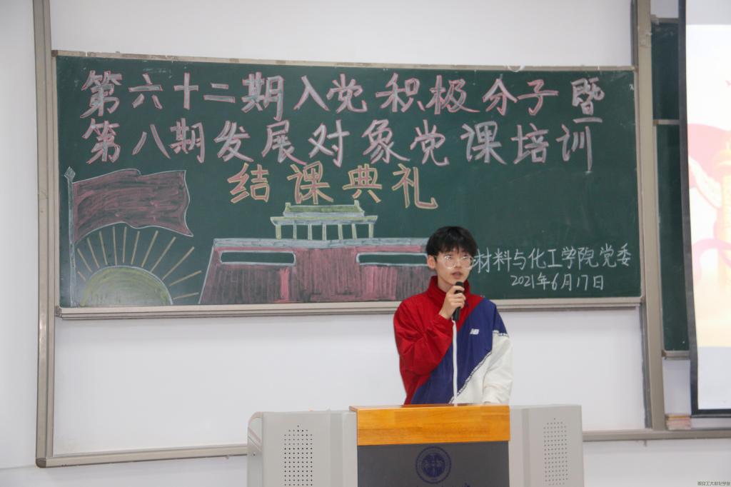 于教1-104举行第62期入党积极分子暨第8期发展对象党课培训结业典礼。小黄书