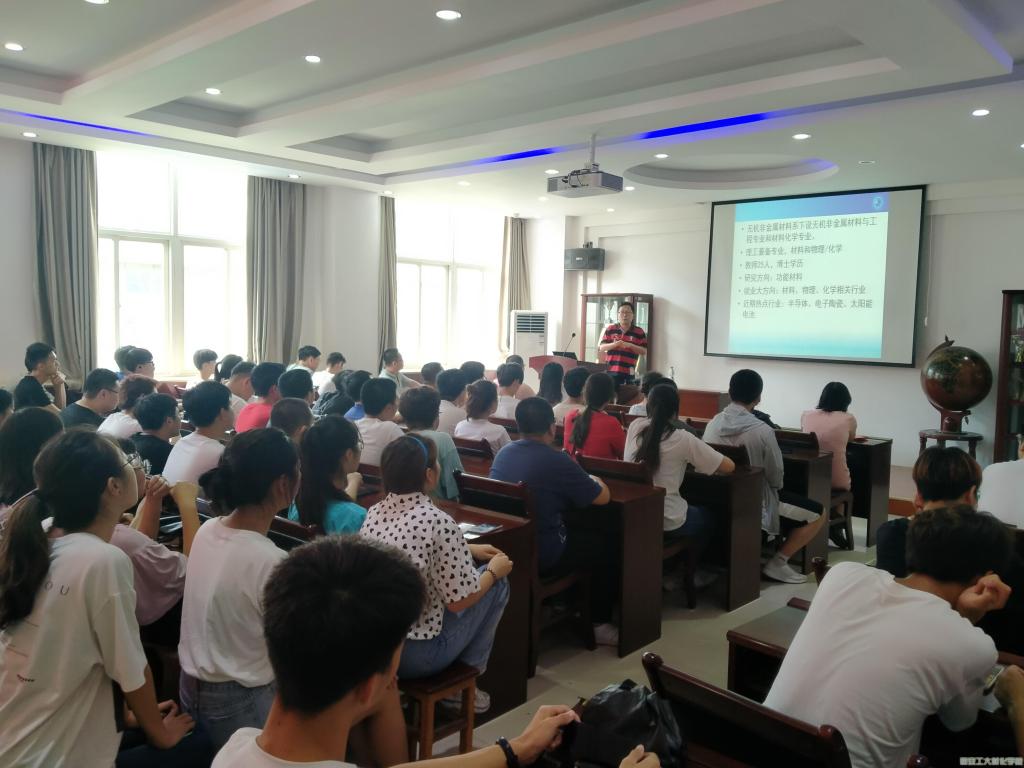 五个专业的专职教师对不同专业的学生进行详细的专业介绍,从学科的设置、核心课程、就业方面、就业前景以及近几年材化毕业生的现状等等方面进行阐述,并且讲解不同年级阶段应重点要培养的能力和规划,让学生们对自身回到小黄书