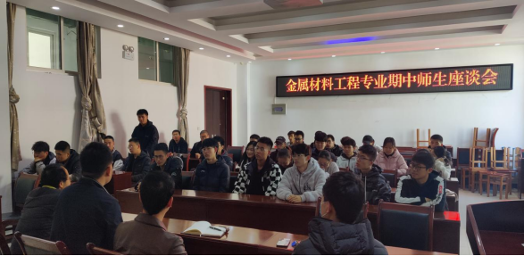2021年11月9日在工3-404会议室召开金属材料工程专业期中教学师生座谈会。金属材料工程专业系主任刘永勤,教师代表宇红雷,方频阳等和学生代表参加。会议由2019级学生辅导员乔娜主持。