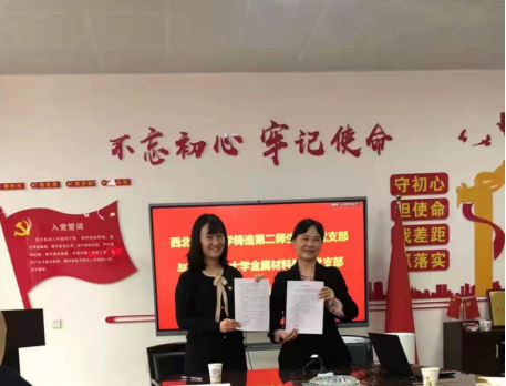 在学科发展方面高度契合,在师资队伍和人才培养方面有互通互助的良好历史传统和合作基础,希望能够通过支部共建活动,进行学科资源整合共享,坚持互利共赢,共同推进两所学校的材料学科共上新台阶。西安工大金属材料教工党支部书记梁艳峰和铸造第二融合党支部书记杜敏疏分别介绍支部概况,宣读并签署了共建协议。