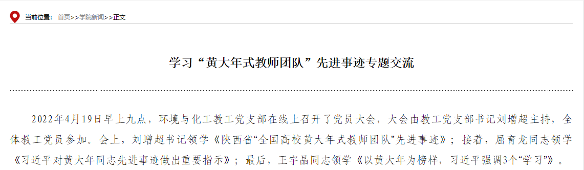 党委理论中心组在党建工作室开展专题学习,会议集中学习了《习近平给全国高校黄大年式教师团队代表回信》《习近平对黄大年同志先进事迹作出重要指示》《习近平回信勉励全国高校黄大年式教师团队代表》及陕西省“全国高校黄大年式教师团队”先进事迹精神。在研习交流过后,从党建和教学两方面形成决议,一是将向黄大年同志学习活动纳入小黄书