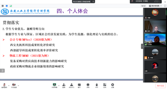 王育晓教授从研究生教育发展现状及突出问题、系列文件制度规范、建立关心型导学关系-伦理规约等三个方面,结合个人指导学生经历,系统阐述了如何加强研究生导学关系建设。