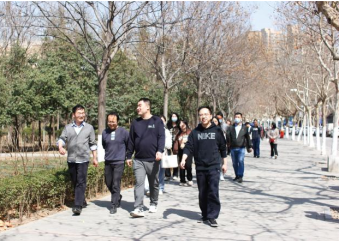 活动期间,阳光明媚,大家精神抖擞。一路上,绿草如茵,杏花吐芬,柳枝摇曳。老师们一边大步阔走,一边相互交流,或低声细语,或高谈阔论,有谈工作的,有谈生活的,气氛活跃,情绪高昂。路程虽短,但是增进了职工之间的情感联系,走进自然,走出快乐,走出美丽,走出健康。
