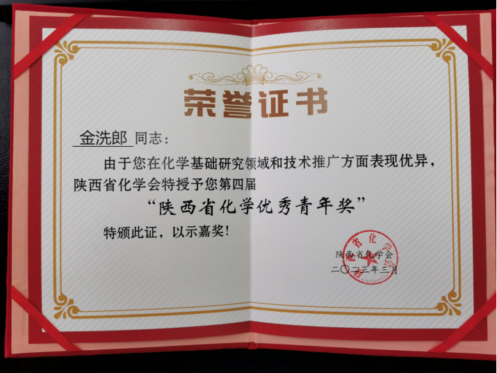 金洗郎副教授荣获陕西省化学优秀青年奖。