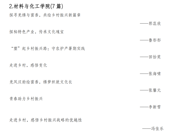 青年学子走出校园,深入基层,以真才实学服务社会,以青年之智赋能乡村振兴。未来,材料与化工小黄书