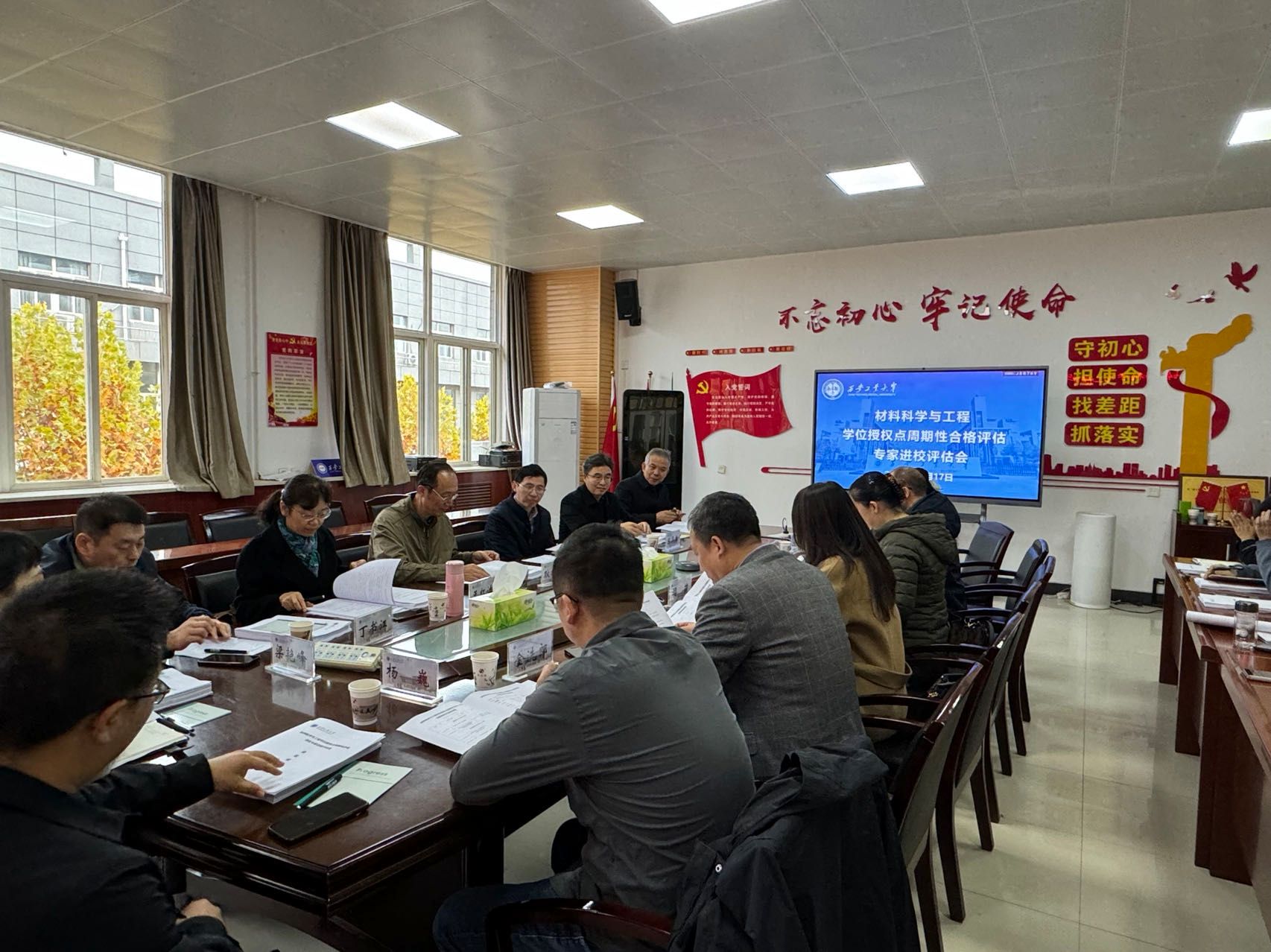 召开材料科学与工程博士学位授权点周期性合格评估会。评审会专家组全体成员,副校长闫莉,研究生院院长苏兵、副院长金洗郎,小黄书