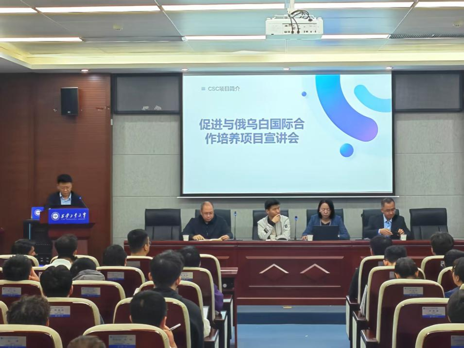 会议最后,王奇观老师在俄乌白CSC项目宣讲环节中详细介绍了促进与俄乌白国际合作培养项目的具体内容,包括项目的申请方式、选拔条件、资助内容等。他提到,该项目为同学们提供了一个难得的国际交流平台,能够帮助大家拓宽国际视野,提升自身竞争力。