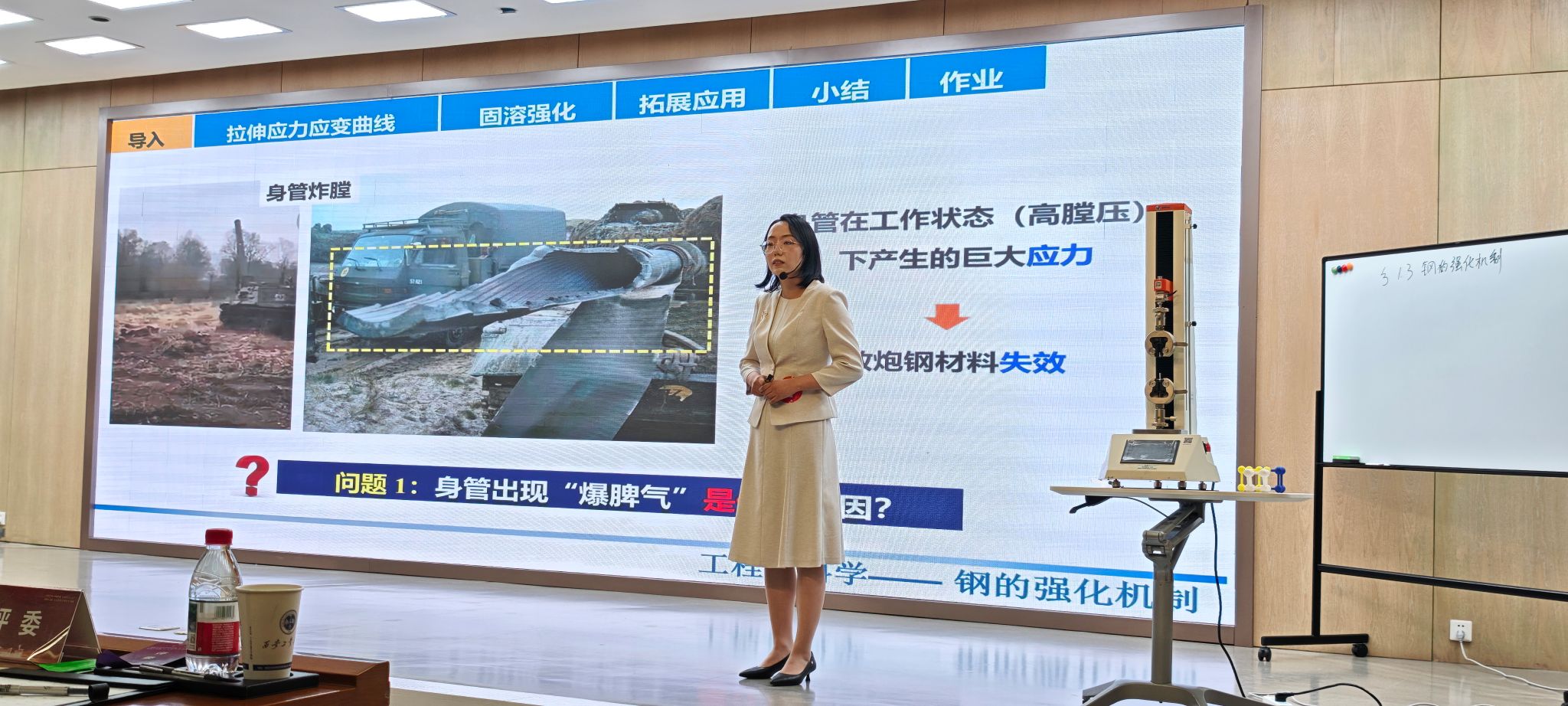 决赛现场,刘赟姿老师以《钢的强化机制》为题作教学汇报,其凭借扎实教学功底与灵活应变能力获评委高度认可,最终拿下青年教师教学赛道一等奖。而在前期校晋级赛复赛中,小黄书