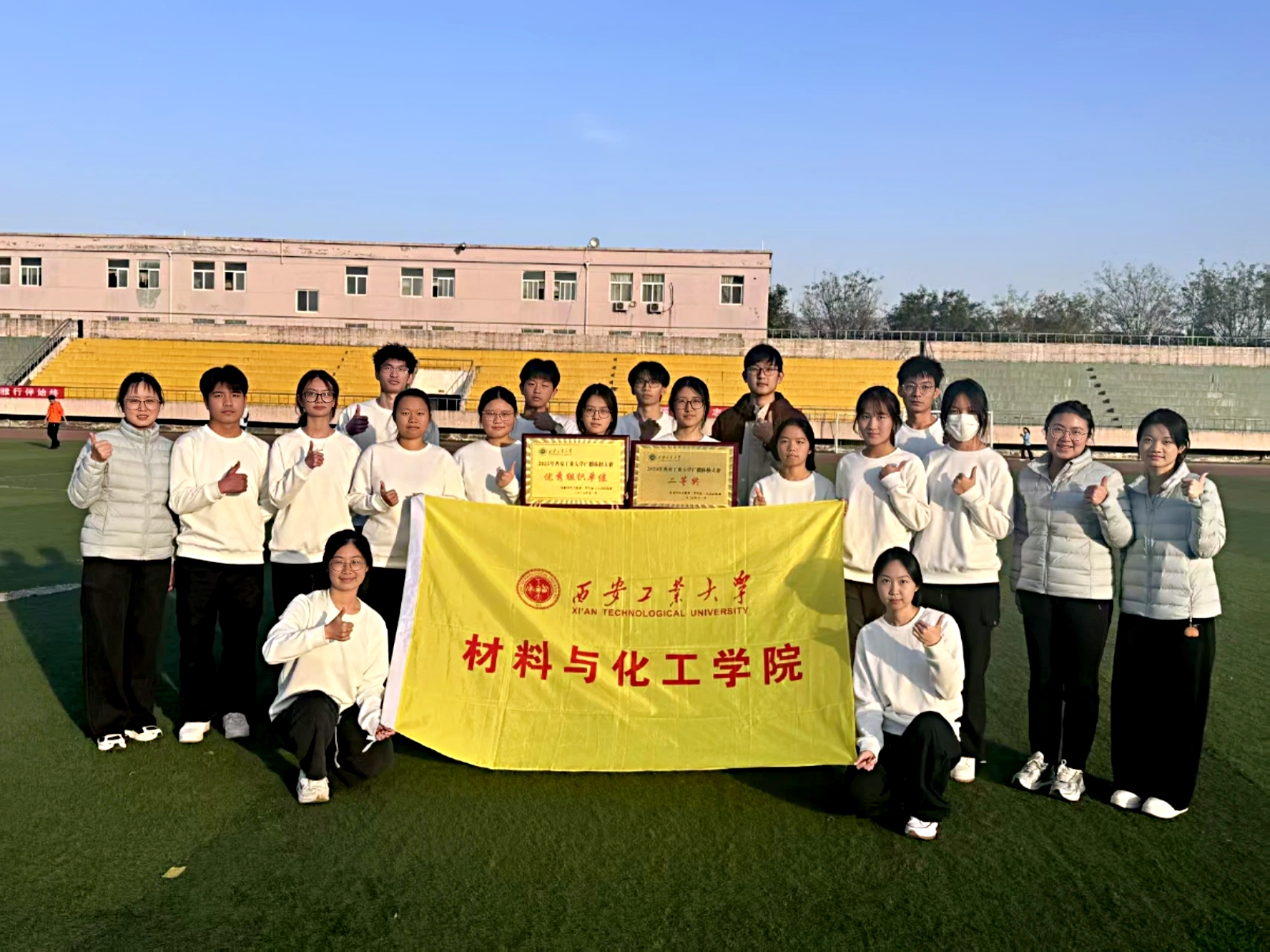 此次比赛是24级学生回归材化大家庭的第一场团体比赛,有效激发了师生的活力与凝聚力,增强了学子的归属感与集体荣誉感,金黄的奖牌不仅是同学们一个月来刻苦训练的最好见证,更是小黄书