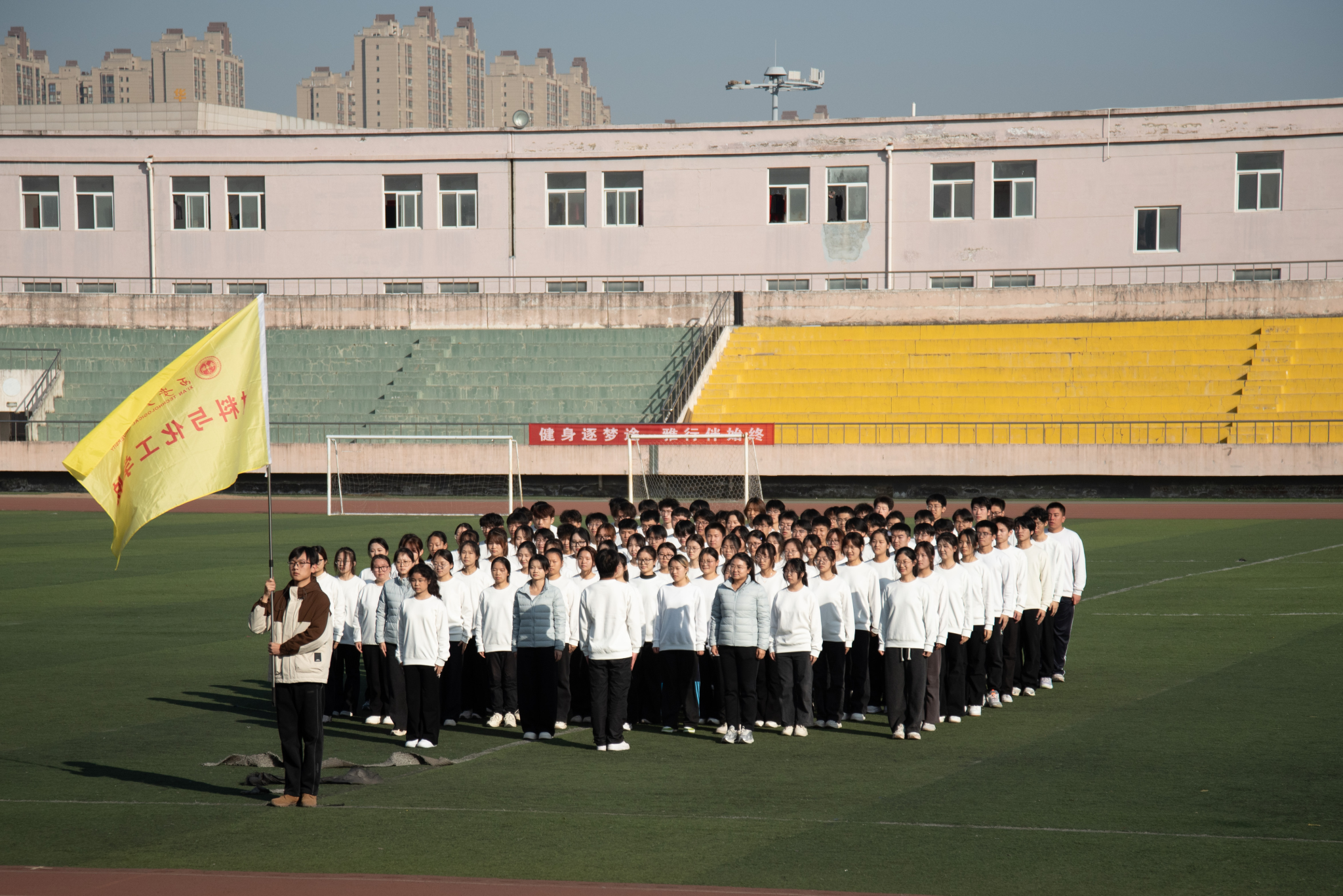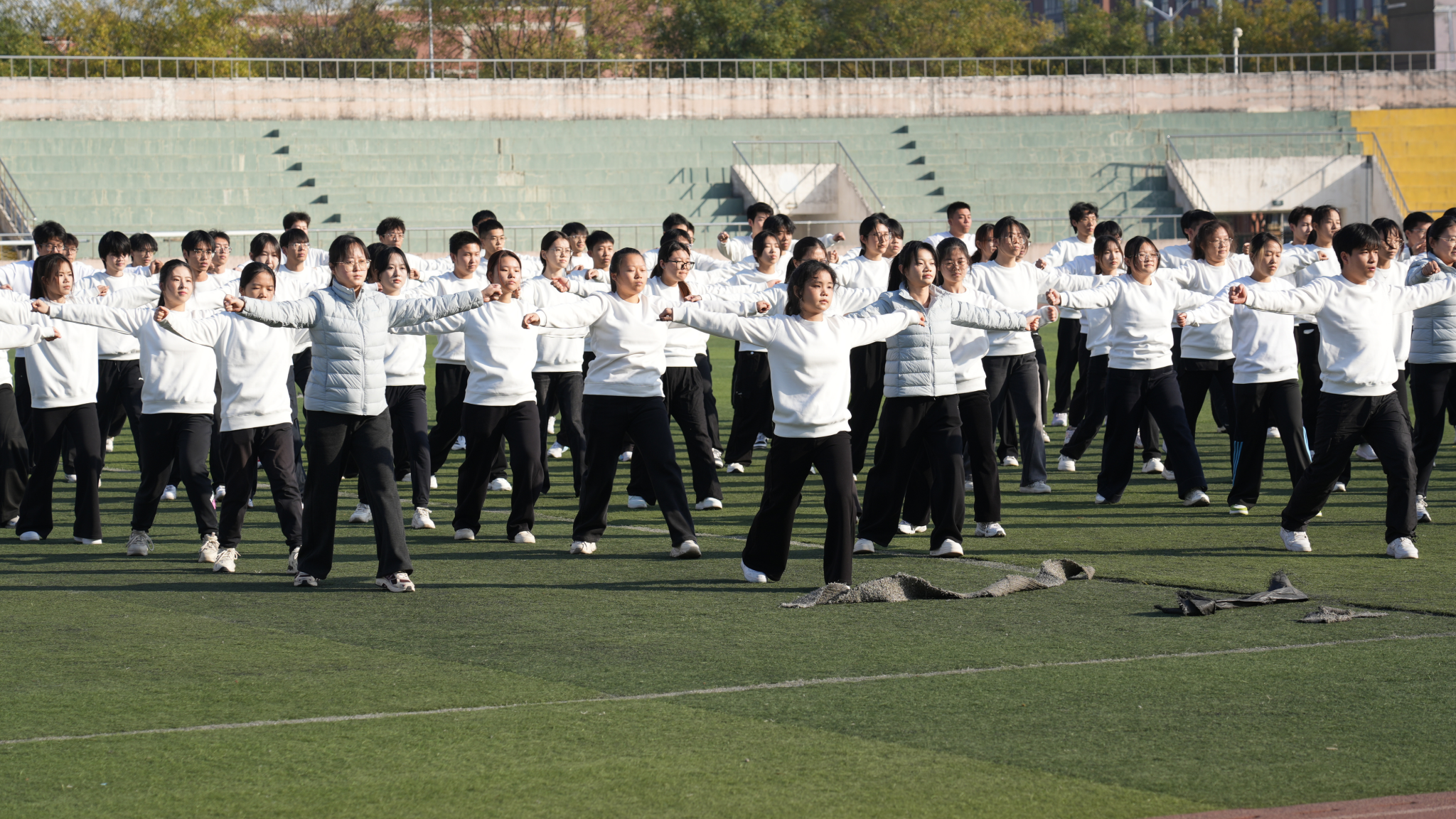 百余名参赛同学投入了为期一个月的紧张集训。训练期间,师生们克服学业压力与天气变化等困难,利用课余时间反复锤炼动作细节,力求每一个动作都达到标准、整齐、有力。从生疏到熟练,从个人练习到团队磨合,同学们挥洒的汗水是拼搏的见证,默契的配合是成功的基石。