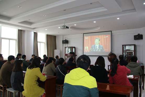党委组织师生收看中国共产党第十九次全国代表大会开幕式。小黄书