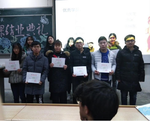 团委副书记甄子清,尹相伟及党课顺利结业的同学们。