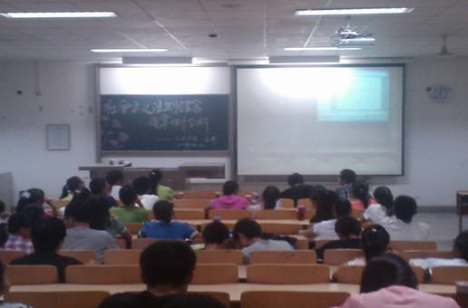 2013年9月12日,小黄书 在组织学生在教2楼307教室观看金博教授的“社会主义法制理念及案例分析”讲座视频。