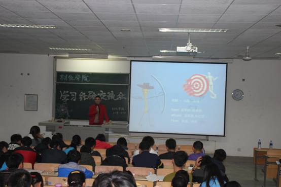 大二至大四的国家奖学金荣誉获得者主讲。高分子专业11级罗小颖,她是国家奖学金以及省级数学二等奖获得者,她主要向大家分享了如何更好的由高中向大学转变的经验;12级国家励志奖学金获得者马欧亚学长也与大家分享了他在学习中具体遇到的困难和解决方法;十佳大学生获得者孙明月不仅为大家提供了新颖的学习方法,她的乐观豁达的学习生活态度更是深深地感染了与会同学。