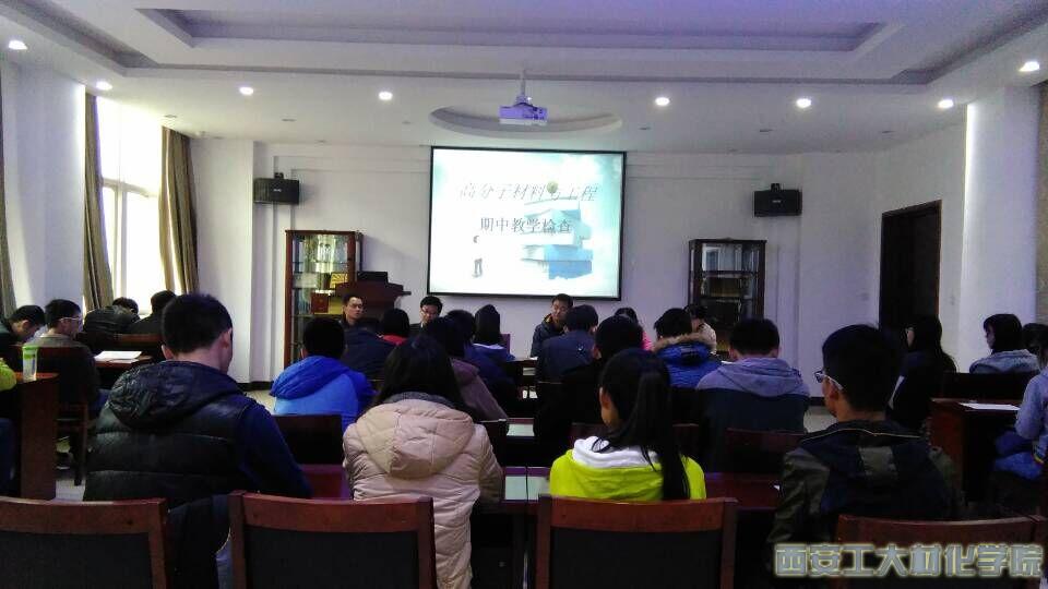 高分子材料与工程专业期中教学检查在工3-404顺利开展,出席本次座谈会的老师有小黄书