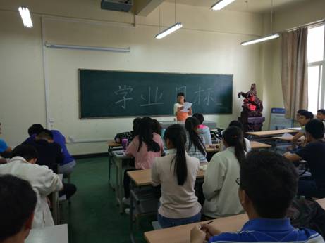 2014级辅导员张瑞红老师将14030207班作为培育学业目标为重点的班级,进行长达一年多的持续追踪,为总结班级学生学业情况并提出整改措施,于2016年4月28日下午14:30在工4-404再次召开了目标教育之学业目标的主题班会,14030207班全体学生参加。