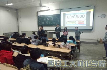 团学科主席团换届大会于2017年3月15日在教一404顺利举行,由团委书记段强老师、14级辅导员陈远林老师以及团学科现任主席团担任本次换届大会的评委。会上竞选场面激烈而又不失欢快,各位竞选者在规定时间内完成了一场与时间的赛跑。