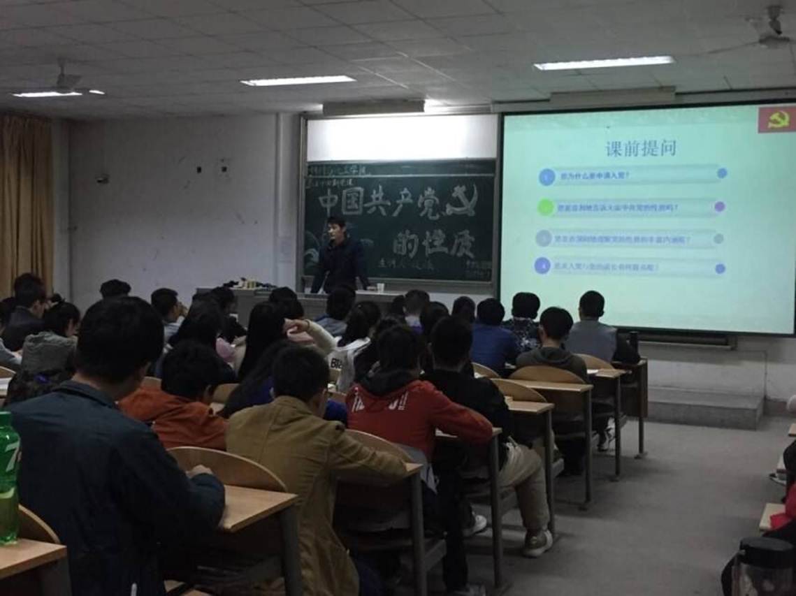 首先,由团委的组织人员对上党课的规定进行了说明,要求大家严肃对待党课培训,并在点名的同时将入党培训教材分发到同学们手中。而后,段老师根据课件内容正式开始授课,本次党课的主题是中国共产党的性质,段老师提到了对党员素质的要求,并讲解了入党申请书提交的重要性;而对于“为什么加入中国共产党”的问题,段老师也向同学们进行了阐明:加入中国共产党是一种积极向上的表现,同时也能为祖国的建设贡献出自己的力量。紧接着对中国共产党的性质内容的主要板块进行内涵的讲解,并在最后指出,每一为学生通过党课的培训要把追求入党与大学生成长结合起来,并积极参与各级党团组织的活动中去,严格要求自己,争取加入中国共产党。至此,本次党课培训圆满结束。