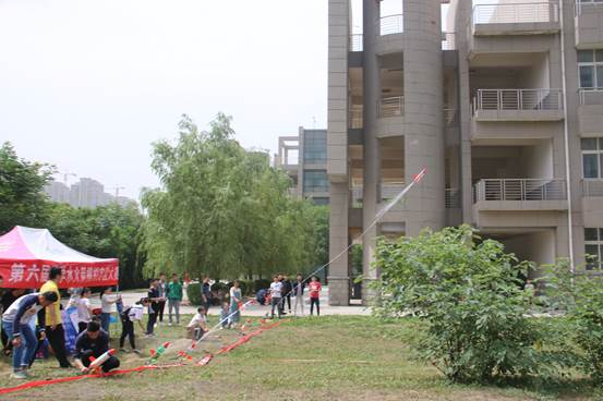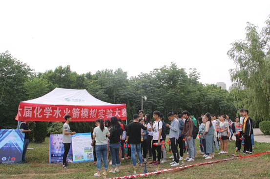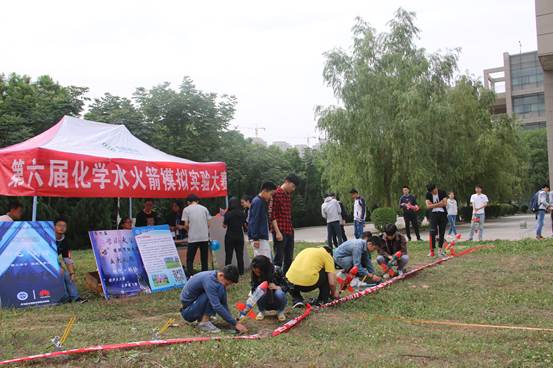 科学技术协会特别举办化学水火箭模拟实验大赛。此次大赛于2018年5月27日在教一楼北边空地举行,到场的有小黄书
