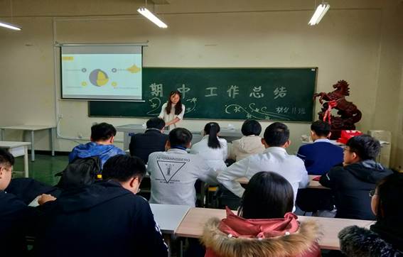新生材料化学专业班级18030411班于2018年11月28日下午三点在工4-404开展“期中考试分析”主题班会大会,2018级辅导员张瑞红和18030411全体学生参加本次会议。