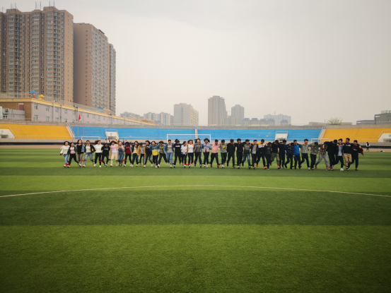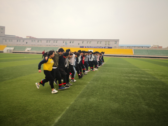 于2019年3月28日中午12时在未央校区田径场展开“多人多足”项目训练,小黄书