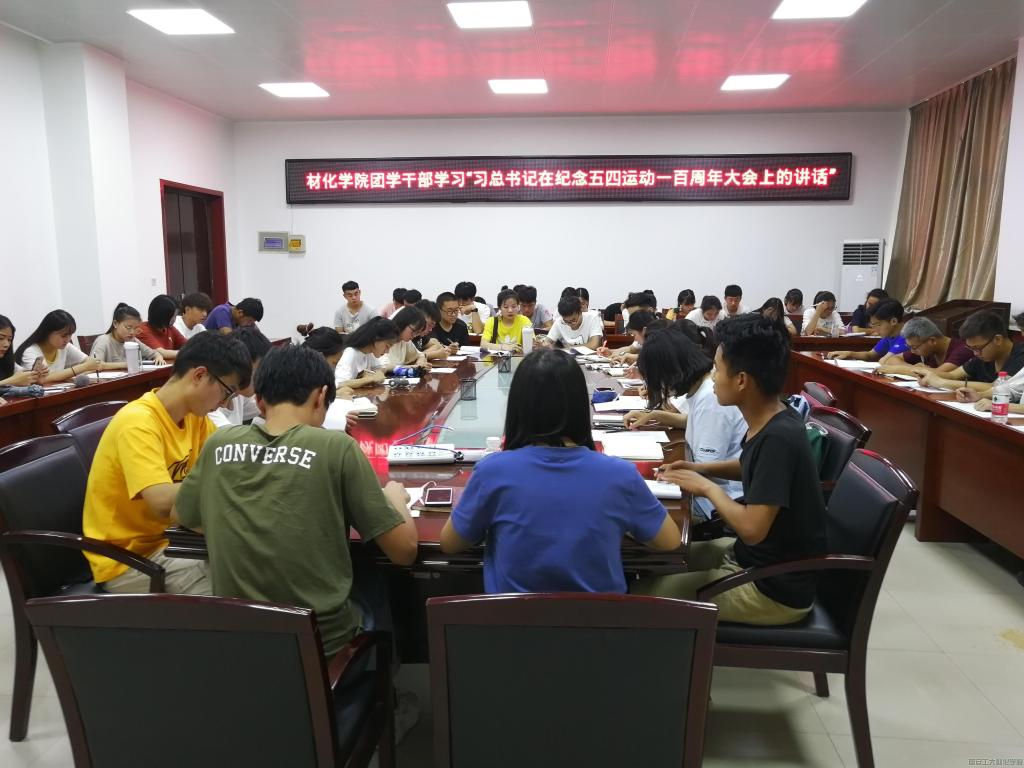 团委组织全体团学干部于2019年6月10日晚6时在工三-410学习“习近平在纪念五四运动100周年大会上的讲话”。