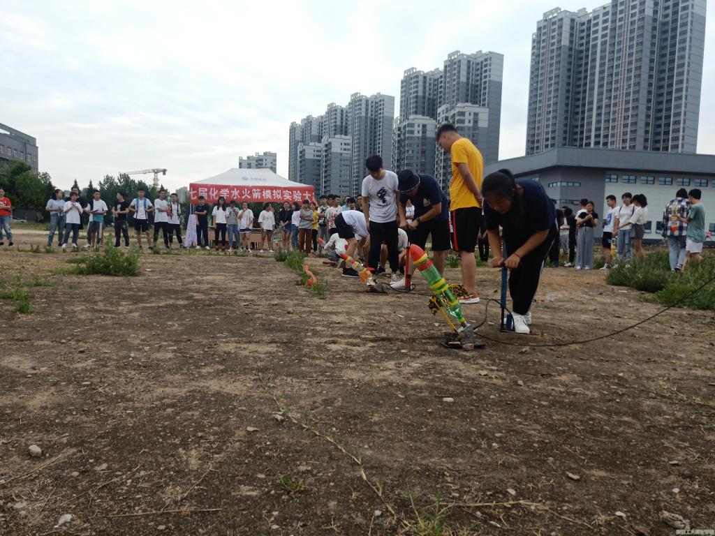 科学技术协会于6月15日下午5时在我校未央校区篮球场旁西边空地举办以“建国七十,中华腾飞”为主题的化学水火箭大赛。科协全体工作人员及参赛选手参与此次大赛。