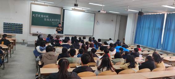 首先,2018级黄雨沫就四级考试的基本情况做了系统的介绍,针对各部分题型进行了详细的解读,分享了答题技巧。2018级王海涛向大家分享了自己在备考中关于单词的记忆方法,分别从联想法、构词法、谐音法和情境法等向大家做了示例。其次,2019级学生辅导员乔娜为大家宣读了《全国大学英语四级考试须知》、《诚信考试承诺书》以及《小黄书