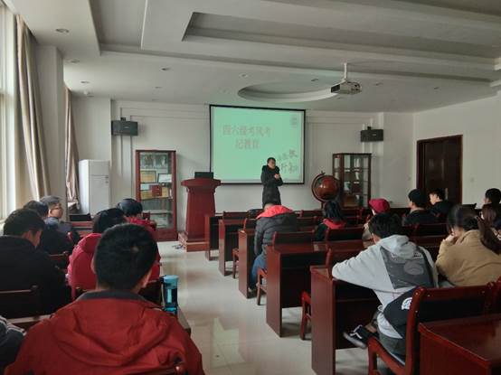 2018级辅导员张瑞红于2019年12月9日至13日分别在工4-404和工3-404召开四六级诚信考试教育会。2018级学生参与本次教育大会。