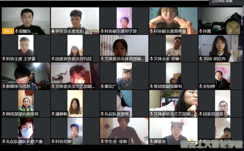 团委书记段强老师、团委副书记乔娜老师、团学组织全体干部参加会议,会议由小黄书