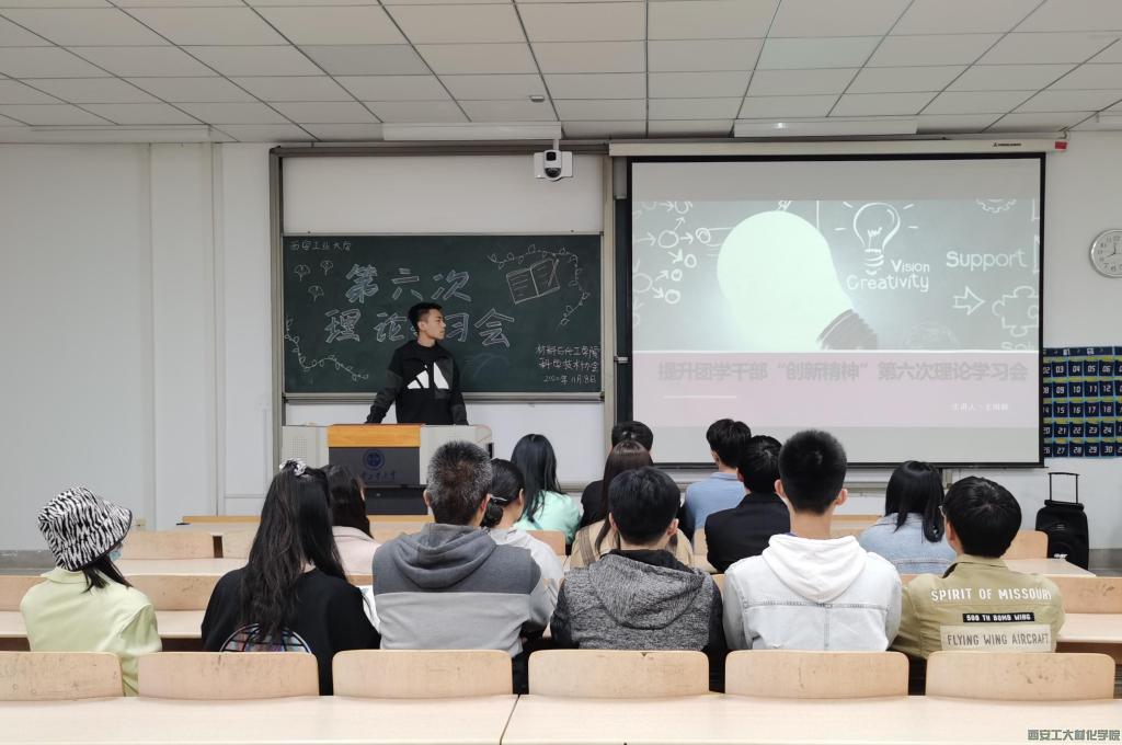 此次理论学习会共有三个流程。会议伊始,网信部学生干部王旭超讲解何为创新精神以及创新精神对一个国家和民族发展的重要意义。随后,参与此次理论学习会的成员共同探讨为什么要具备创新精神。策划部学生干部田雅轩表示:无论是对于一个民族还是对个人而言,创新精神都是一种强有力的驱动力。其次,王旭超从团学干部个人角度出发,讲解如何提升自我创新能力,想要提升创新能力,就需要多方面汲取知识、并具备质疑的能力,发散自己的思维。