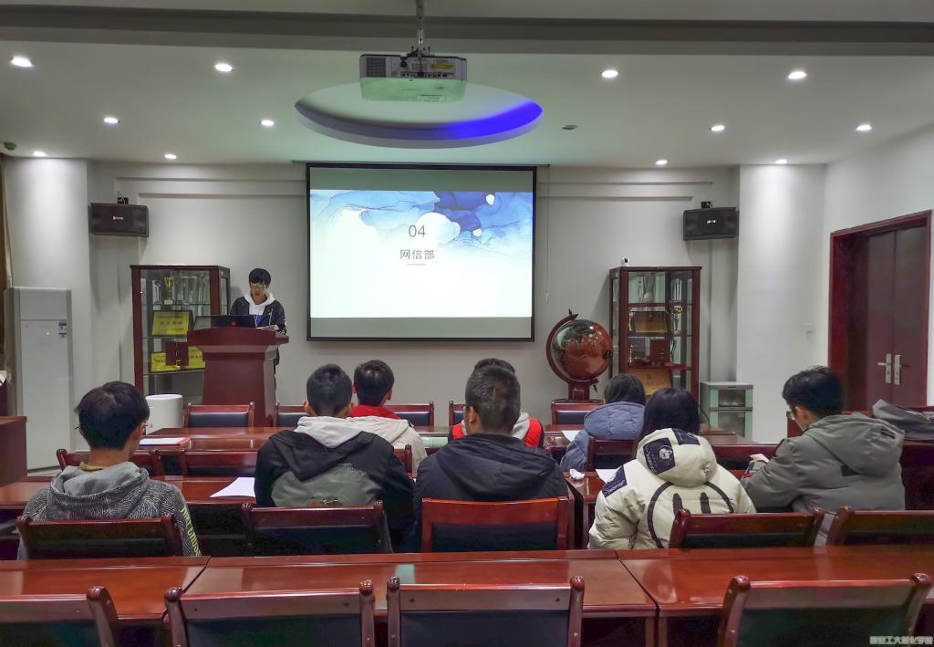 本次例会由网络信息部学生干部刘恩承主持召开,共分为两个部分。会议伊始,策划部学生干部田雅轩对本月结束的“幻海启程,梦想领航”第二届PPT制作大赛做出总结,同时反思在比赛中出现的问题。其次信息宣传部学生干部张星对本部门专栏推文任务做出安排和分配,此外还有科技竞赛部学生干部张浩晗对PPT大赛颁奖典礼中出现的问题进行总结与反思,网络信息部学生干部吴泽丰也提出了本月小黄书