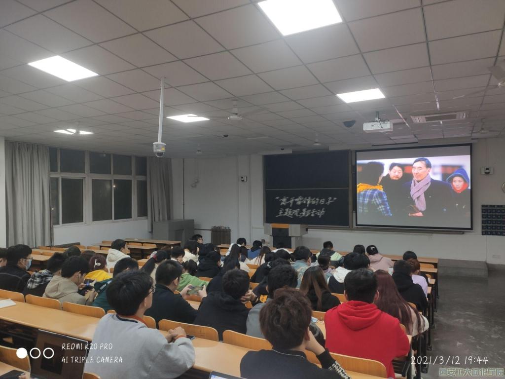 活动一开始,学生干部安排同学们排队签到后有序就座。随着电影的开始,每位同学都认真观看电影,不仅对“全心全意为人民服务”这句话有了更深一步的认知,还学习到了雷锋精神的内涵以及雷锋同志乐于助人,勇于奉献的精神。在这两个小时的观影活动中,每位同学的眼神中都由内而外的散发着光芒。了解到了雷锋精神其实质和核心是全心全意为人民服务,为了人民的事业无私奉献,它已经成为我们这个时代精神文明的同义语、先进文化的表征。“别人的困难就是我的困难”,这是雷锋同志实实在在的品质,也是每位同学心中坚定的信念。随着影片的结束,本次活动落下帷幕。